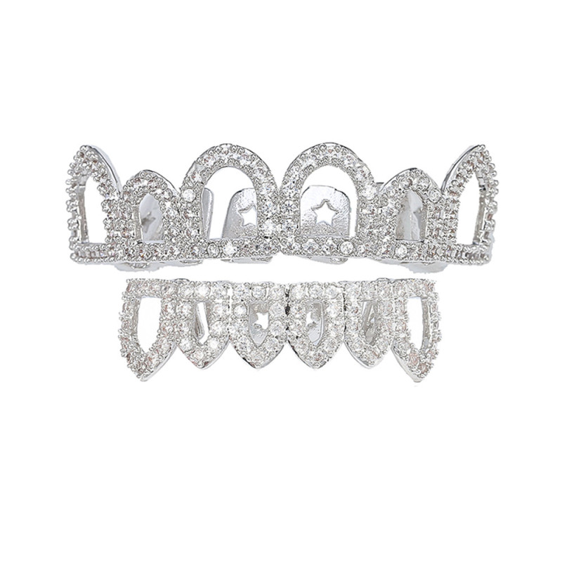 El Grillz Dent "Royal Crown Silver" aporta un toque sofisticado y lujoso, perfecto para un look audaz y refinado. Su diseño calado recuerda a las más bellas coronas reales, mientras que sus diamantes brillantes ofrecen un brillo incomparable. Diseñado para los amantes del estilo de alta gama, este grillz plateado y brillante se presenta como un accesorio de prestigio.