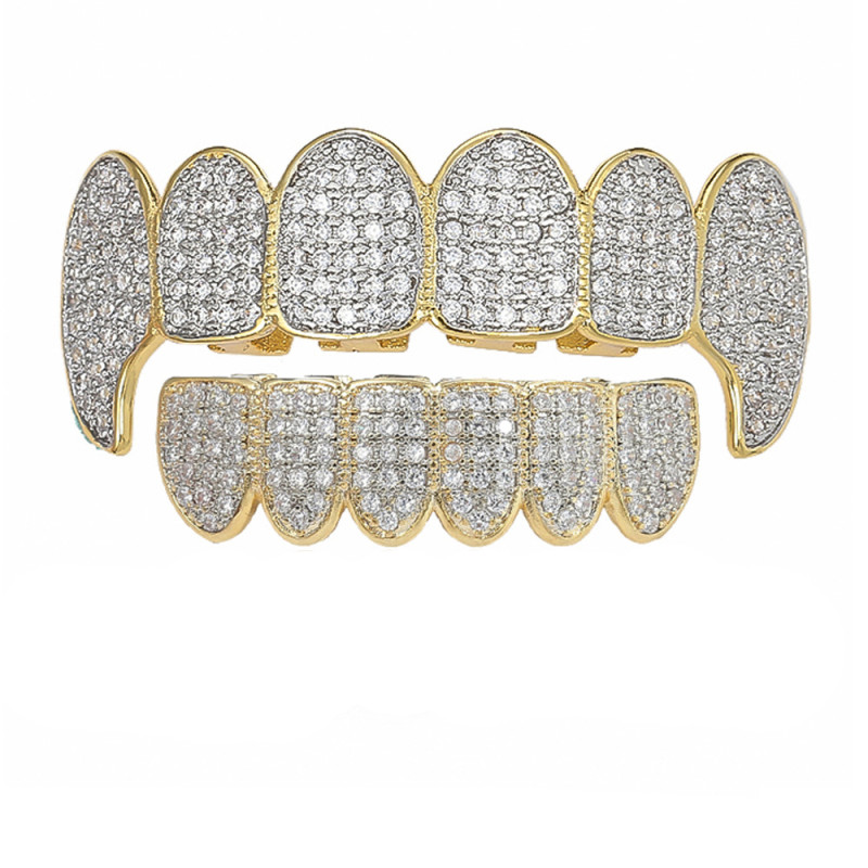 Visa ditt karisma med glans tack vare Grillz Tand "Royal Ice Gold" Guld- och Diamantornament, ett smycke värdigt de största.